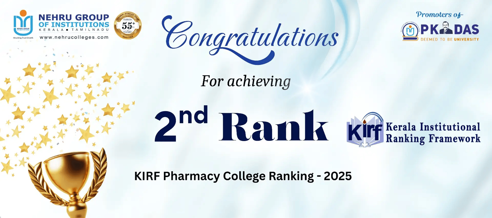 Nehru college of Pharmacy is one of the best pharmacy college in the state of Kerala accredited by NAAC A grade with score 3.23 and is equipped to facilitate research work. The energetic involvement of eminent professors, Pharmaceutical industry experts supported by research-oriented lab, full fledged computerised library etc., makes it a cut above the rest. Nehru College of Pharmacy was established in the year 2003 with B.Pharmacy degree courses by late chairman Sri. P. K. Das.